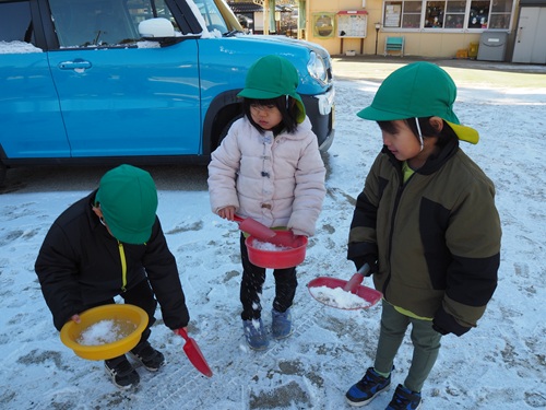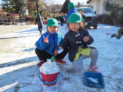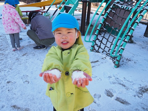 少ししか積もらず、午前中には溶けてしまいましたが、しっかり雪遊びを楽しみました。