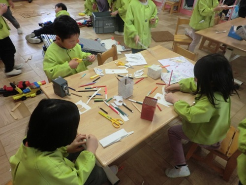 絵を描いたり、Bブロックで遊んだり…楽しく過ごす姿がみられました。