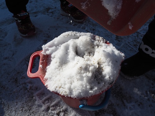 バケツに雪を集めてみたり、雪玉を作ってみたり。