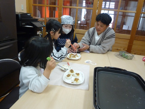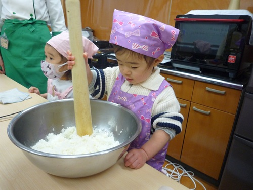 1月の「とことこの森」では、クッキングで五平餅を作りました。