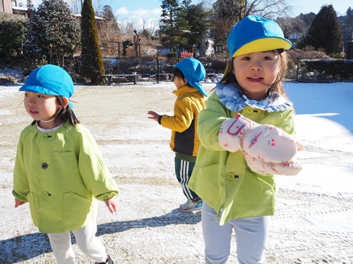 1/22(木)登園してみると、園庭に雪が積もっていました。
