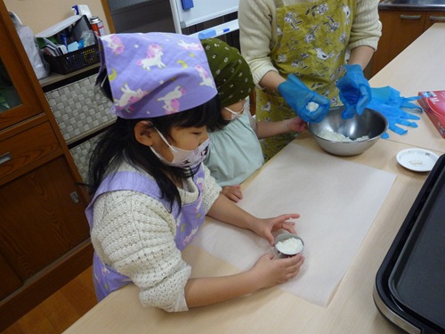 ドーナツを丸めます、こねこね。