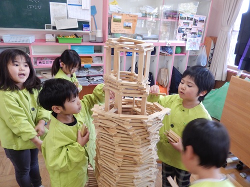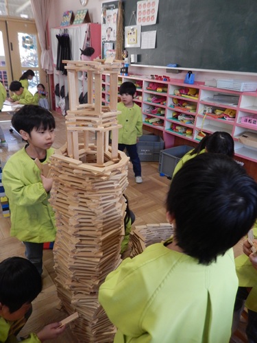 子ども達の身長より高いタワーが完成しました!!