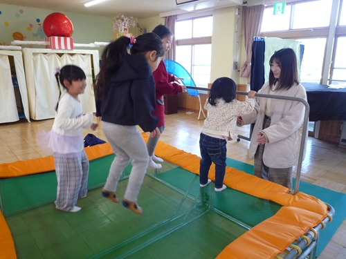 遊戯室中を走り回ったり、トランポリンで高く飛んだり、しっかりからだを動かして遊ぶことができました。
