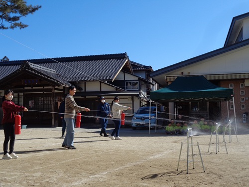 避難訓練を行い、伊賀良消防署の方にお越しいただきました。